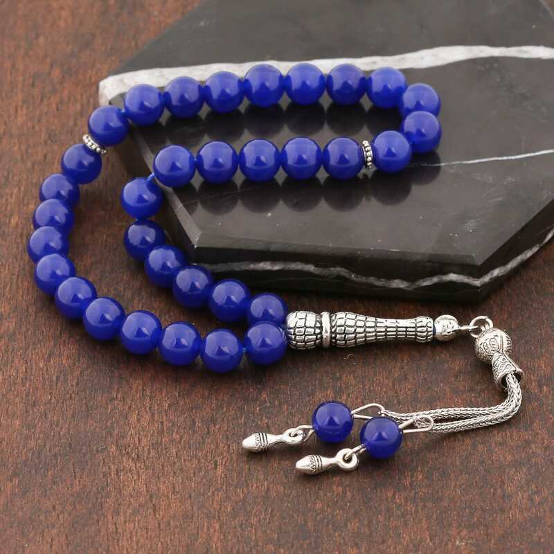 Dogaltas Metal Puskullu Mavi Yesim Tasi Tesbih