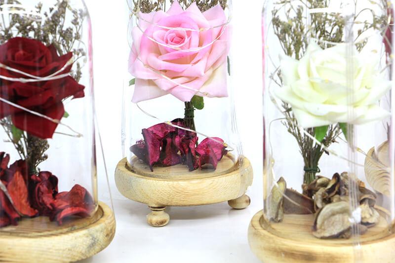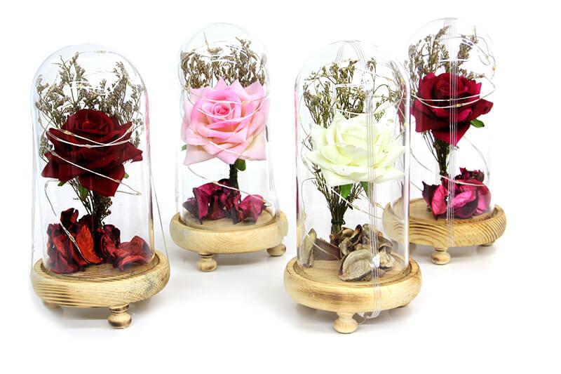 Fanus Gul 19/10cm Led Isikli Cam Fanuslu Hediyelik