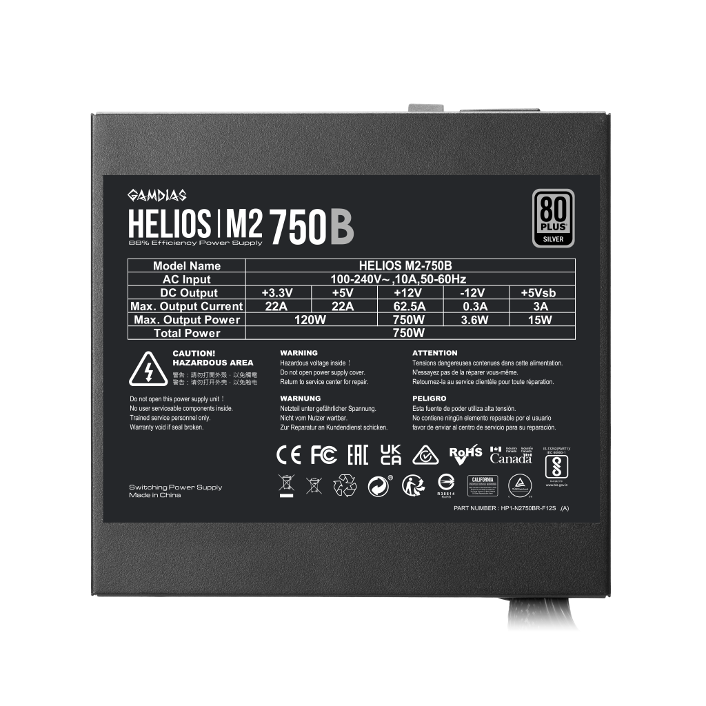 GAMDIAS HELIOS M2-750B, 750W, 80+ Silver, Aktif PFC, GAMING, ATX, Power Supply (PSU)