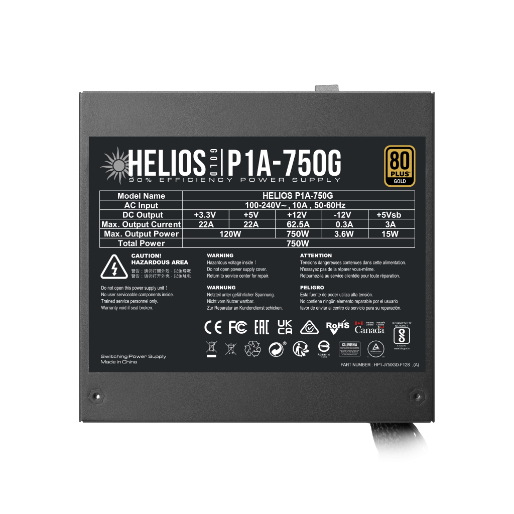 GAMDIAS HELIOS P1A-750G, 750W, 80+ Gold, Aktif PFC, GAMING, ATX, Power Supply (PSU)