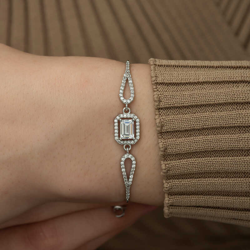 Modaya uyumlu sekilde tasarlanan gumus baget bileklik modellerini hem gundelik yasantinizda hem ozel gun ve gecelerinizde sik bir sekilde kullanabilirsiniz. Yenilikci her yastan kadinin begenisine hitap eden urunlerle kombinlerinizi tamamlayabilirsiniz. Her biri farkli bir stile hitap edebilen tasarimlarla sizler de spor, klasik ve alternatif giyim tarzlariniza uygun modellerimizi tercih edebilirsiniz. Bu sik bileklik; dogum gunu hediyesi, sevgililer gunu hediyesi veya ozel gunlerde tercih edilebilecek mukemmel bir secenektir. Gumus baget tasli bayan bileklik 925 ayar gumusten imal edilmistir. Bu bileklik uzerine rodyum kaplama yapilmistir. Rodyum kaplama yapilan urunler parlakligini uzun sure muhafaza eder, oksitlenmesini geciktirir. Tum gumus bayan bileklik modellerinde oldugu gibi gumus baget tasli bayan bileklik modeli de el emegi ile uretilmistir. Gumus ve degerli taslar nedeniyle belirtilen ortalama urun agirliginda ± %10 sapma olabilmektedir.
