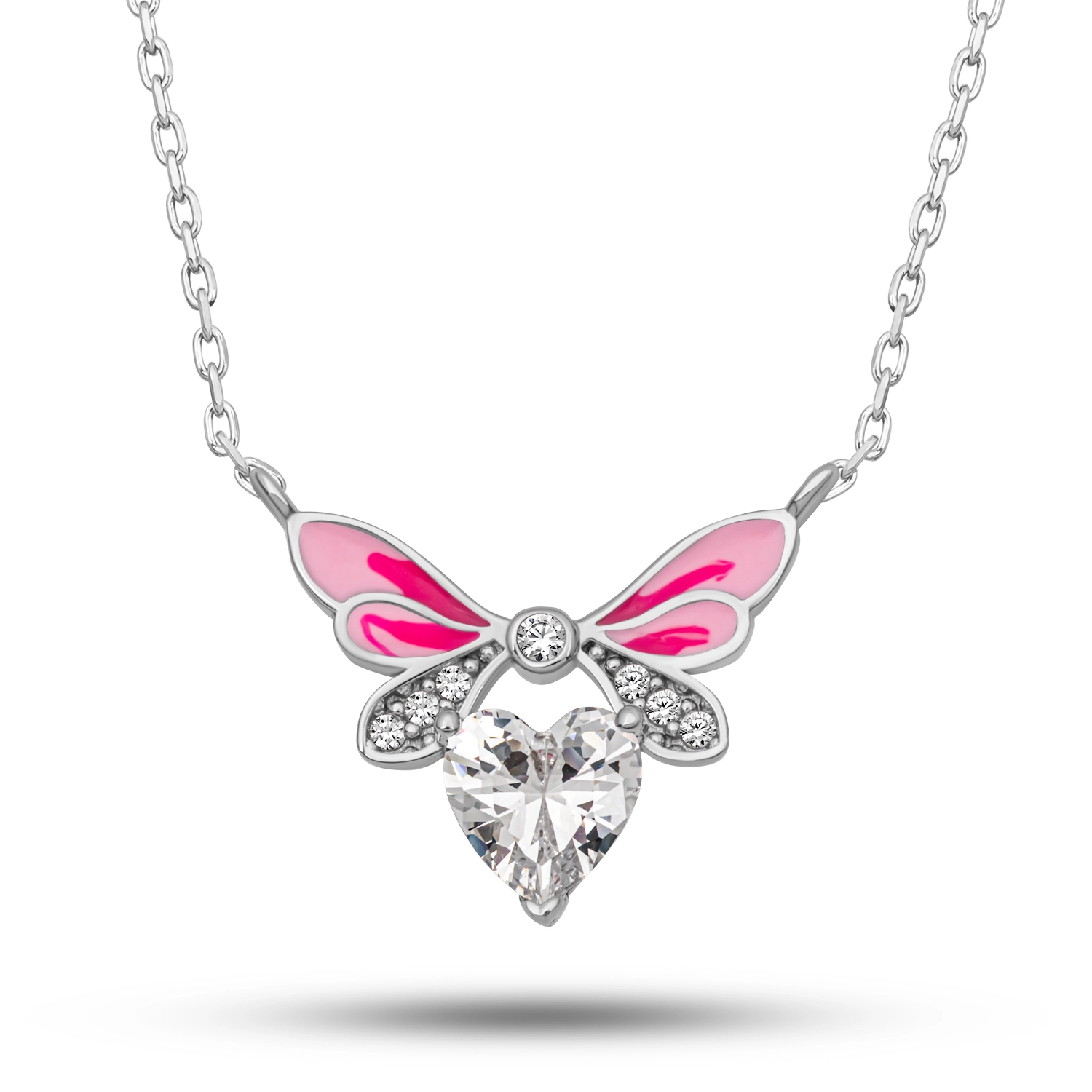 Gumus Beyaz Kalp Peri Kanatli Kolye