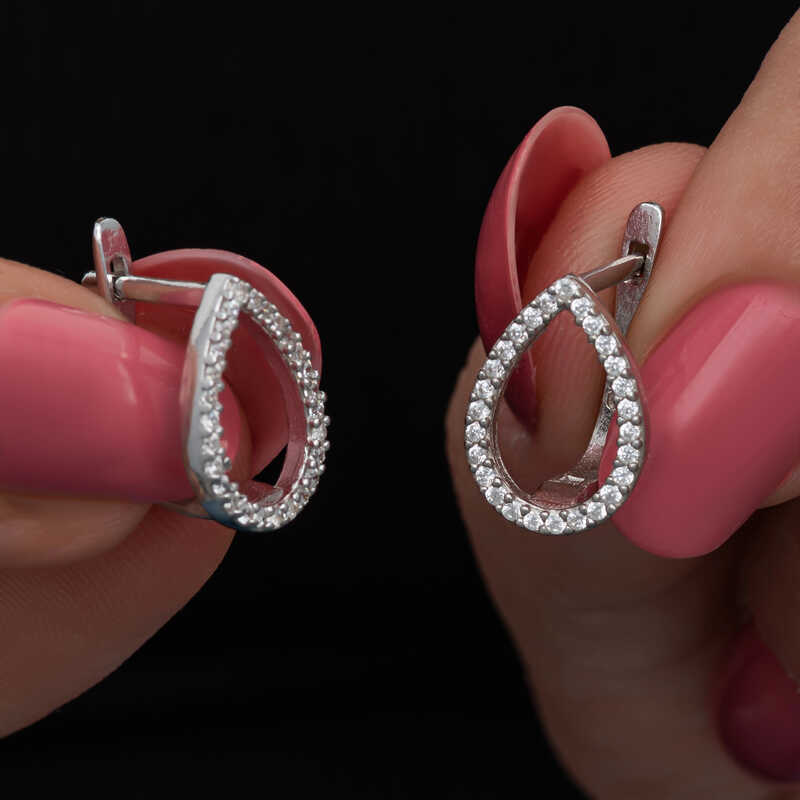 Gumus Beyaz Tasli Damla Kadin Kupe