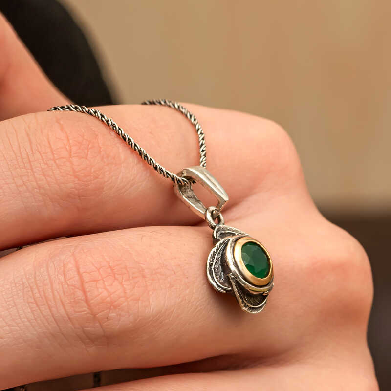 Yesil tasli otantik kolye geleneksel ve modern tarzlari bir araya getirerek stilinize ikonik bir dokunus katiyor.Hem bohem hem de klasik stillerle mukemmel bir uyum saglar.Dogum gunu hediyesi, sevgililer gunu hediyesi veya annelere hediye olarak ozel gunlerde tercih edilebilecek mukemmel bir secenektir.Gumus yesil cicek desenli otantik kolye 925 ayar gumusten imal edilmistir. Gumus uzerine rodyum kaplama yapilmistir. Rodyum kaplama yapilan yesil otantik kolye parlakligini uzun sure muhafaza eder ve oksitlenmesi gecikir. Tum kadin kolyelerde oldugu gibi gumus otantik kadin kolye de el emegi ile uretilmistir. Gumus ve degerli taslar nedeniyle belirtilen ortalama urun agirliginda ± %10 sapma olabilmektedir.