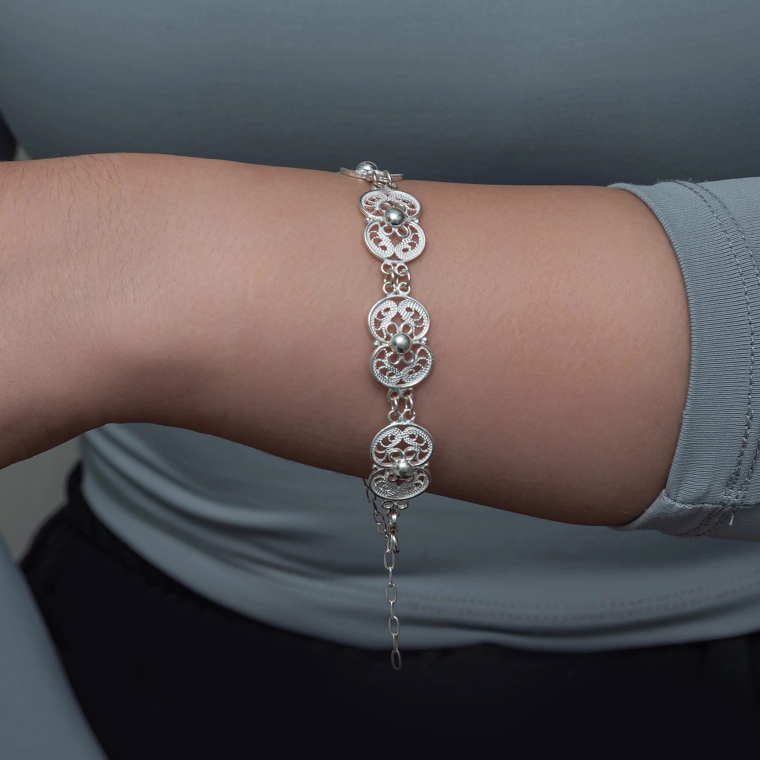 Gumus Cicek Motifli Telkari Kadin Bileklik
