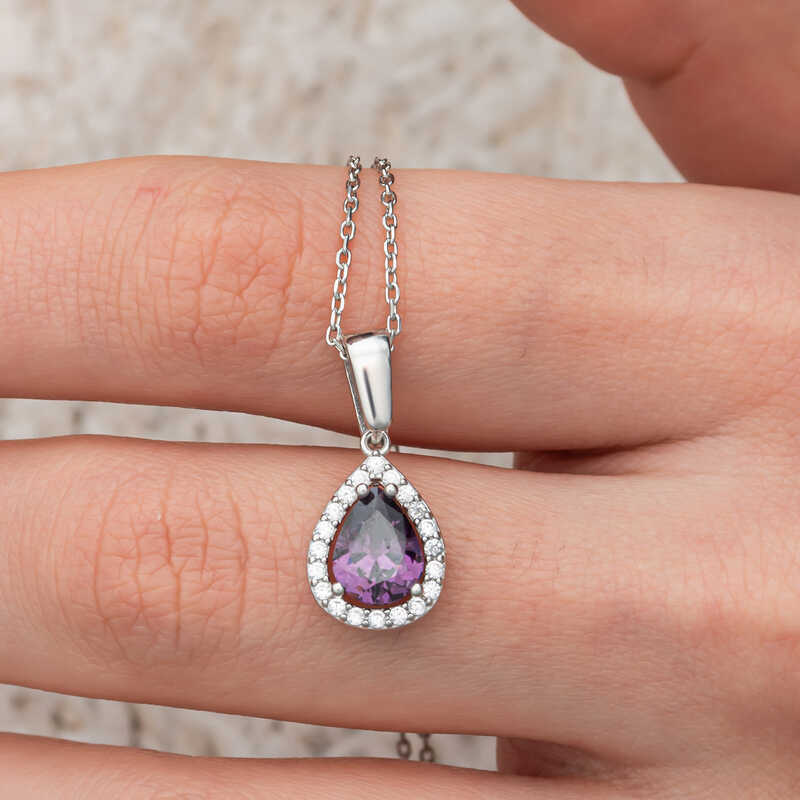 Zarafetiyle goz kamastiran bu ozel kolye,damla kesim mor tasin mistik enerjisini isiltili zirkon taslarla bulusturuyor.925 ayar gumusten uretilmis bu sik tasarim,hem gunluk kullanima hem de ozel gun kombinlerine mukemmel uyum saglar.Morun asil tonlari,boynunuzda sofistike bir etki yaratirken,zarif zinciri ve tas detaylariyla tum dikkatleri uzerinize cekecek.Kendi stilinizi yansitmak ya da sevdiklerinize unutulmaz bir hediye sunmak icin ideal bir secenektir.Gumus uzerine rodyum kaplama yapilmistir.Rodyum kaplama yapilan gumus kadin kolye modelleri parlakligini uzun sure muhafaza eder.Tum kadin kolyelerde oldugu gibi gumus zirkon damla tasli kadin kolye modeli de el emegi ile uretilmistir.Gumus ve degerli taslar nedeniyle belirtilen ortalama urun agirliginda ± %10 sapma olabilmektedir.