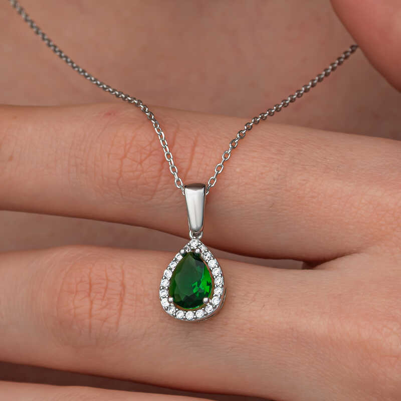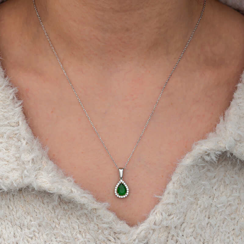 Gumus Damla Zumrut Tasli Kadin Kolye