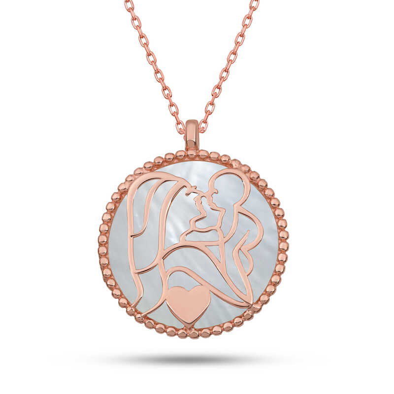 Gumus Fosforlu Rose Anne Cocuk Sevgisi Kadin Kolye
