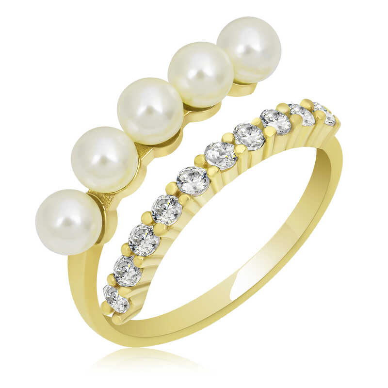 Gumus Gold Ayarlanabilir Inci Tasli Kadin Yuzuk