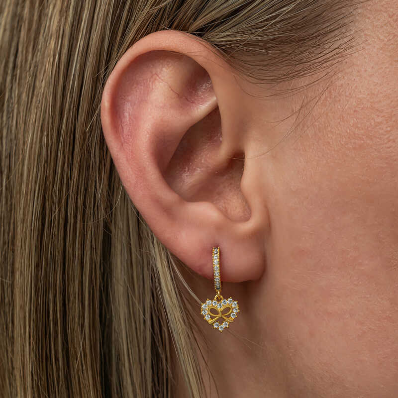 Gumus Gold Kalp Kurdele Sallantili Kadin Kupe