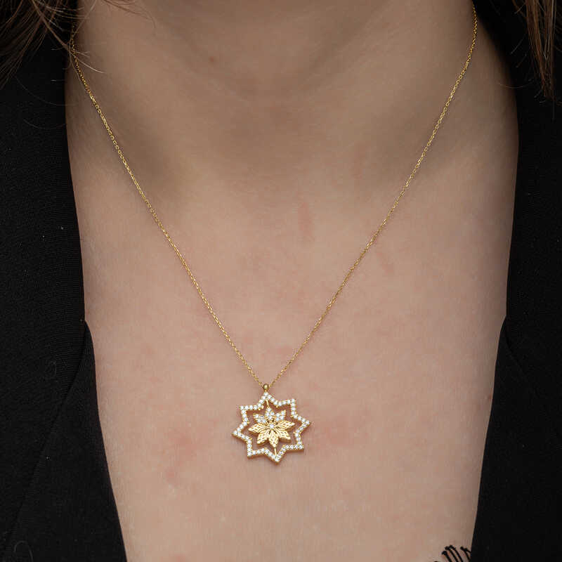 Kadinlarin isiltisi, berrakligi kar tanesine benzetilip ozel olarak tasarlanmistir. Kar tanelerinin her birinin kadinlar gibi essiz ve ayri kiymette olmasi onlari ozel kilan bir diger ozelliktir. Asilligi her donemde dikkat cekmeyi basarmistir. Bunun yaninda insanlarin tipki kar taneleri gibi birbirlerine zarar vermeden de mutlu bir sekilde yasayabileceklerini sembolize etmektedir. Bu sik kolye; dogum gunu hediyesi, sevgililer gunu hediyesi veya annelere hediye olarak ozel gunlerde tercih edilebilecek mukemmel bir secenektir. Kolye, 925 ayar gumusten imal edilmistir. Gumus uzerine gold kaplama yapilmistir. Gold kaplama yapilan gumus kadin kolye modelleri parlakligini uzun sure muhafaza eder, oksitlenmesi gecikir. Zincir boyu ortalama 45 cm'dir. Tum gumus kadin kolye modellerinde oldugu gibi bu gumus kar tanesi kadin kolye de tamami el emegi ile uretilmistir. Gumus ve degerli taslar nedeniyle belirtilen ortalama urun agirliginda ± %10 sapma olabilmektedir.