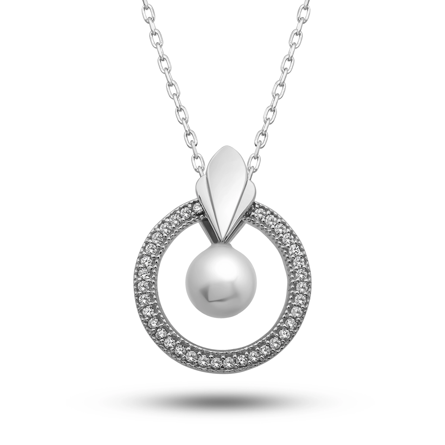 Zarafetin simgesi inci ile modern cember formunu bulusturan bu ozel tasarim kolye, gunluk sikliktan ozel anlara kadar her stile uyum saglayan sofistike bir aksesuardir. Parlak 925 ayar gumusten uretilen kolye, merkezde yer alan inci detayiyla dogal bir isilti sunarken, cemberi cevreleyen tasli islemeler feminen bir parilti katar. Ust kismindaki zarif yaprak formu ise tasarima estetik bir akis ve ozgun bir karakter kazandirir. Hem sik hem de minimal detaylariyla one cikan bu kolye, sevdiklerinize hediye etmek veya kendi stilinizi tamamlamak icin ideal bir secenektir.Gumus ve degerli taslar nedeniyle belirtilen urun agirliginda ± %10 sapma olabilmektedir.
