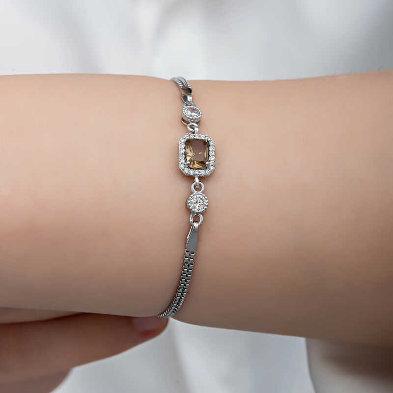 ​Gumus Kare Zultanit Tasli Kadin Bileklik