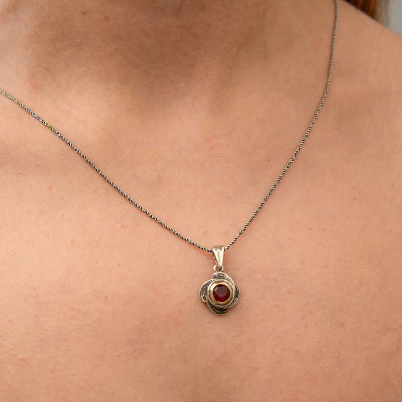 Gumus Kirmizi Tasli Gul Model Kadin Kolye