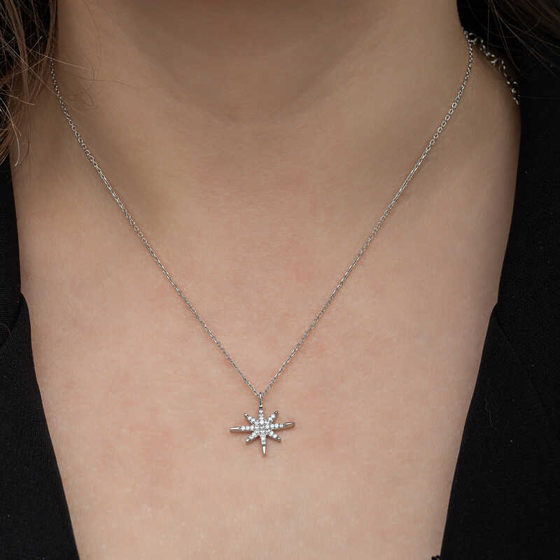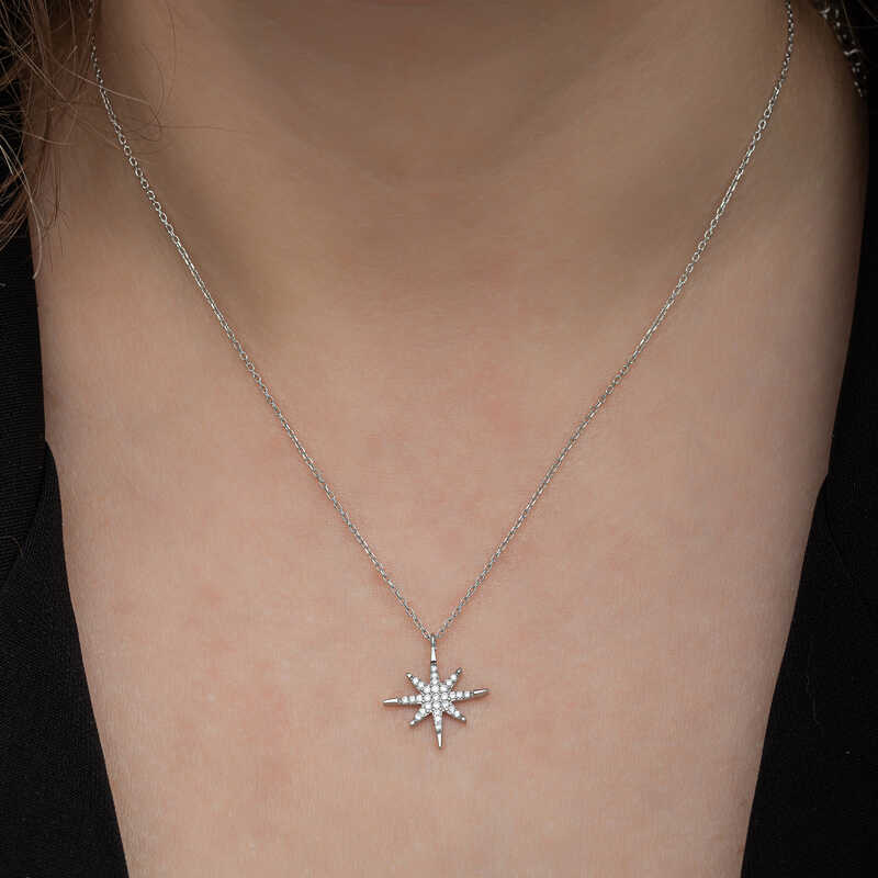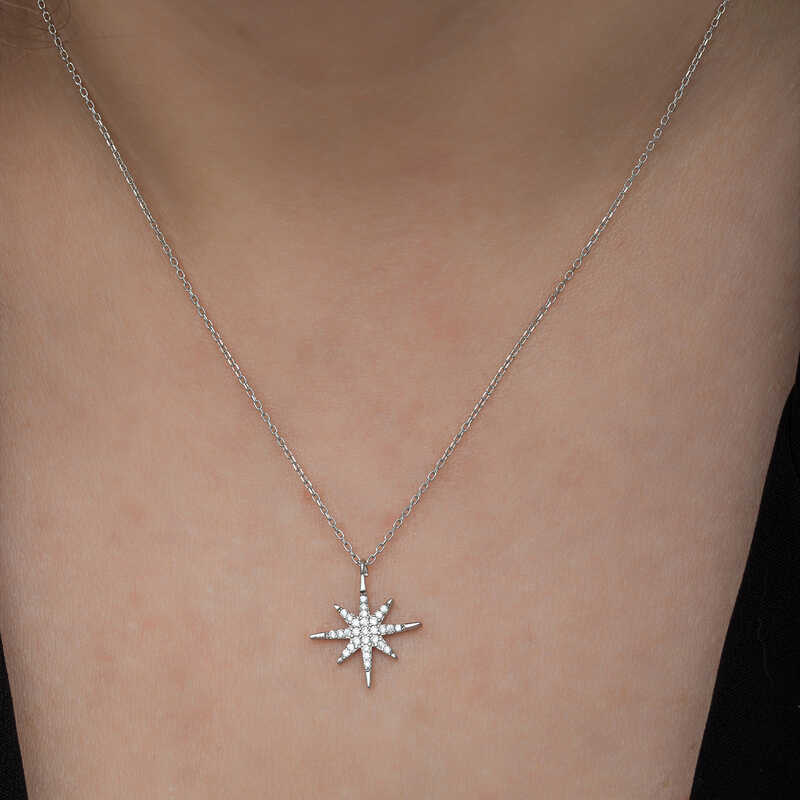 Kutup yildizi milyonlarca yildizdan sadece biridir ama aydan en cok etkilenen yildizdir. Tek istegi aya kendisini begendirmektir. Agladikca parildar onun da yuregi ve ayin ne kadar soguk oldugunu dusunur. Onun yerine usur. Dunya uzerinde goruldugu her ani aslinda onun gercege donusen dusudur. Gokyuzu ne kadar buyukse kutup yildizi o kadar kucuktur. Kutup yildizi ulasamaz aya ne kadar hizli ilerlese de, ne de ay gunese. Gunes sicagindan vazgecip donmez yuzunu ona. Siz de kiyamete kadar bitmeyecek askinizi bu anlamli kutup yildizi kolye ile taclandirin. Bu sik kolye modeli 925 ayar gumusten imal edilmistir. Gumus uzerine rodyum kaplama yapilmistir. Rodyum kaplama yapilan gumus kolyeler parlakligini uzun sure muhafaza eder ve oksitlenmeyi geciktirir. Uzerinde bulunan taslar zirkondur. Zincir boyu ortalama 45 cm'dir. Urunlerimizin tamami el emegi ile uretilmistir. Gumus ve degerli taslar nedeniyle belirtilen ortalama urun agirliginda ± %10 sapma olabilmektedir.