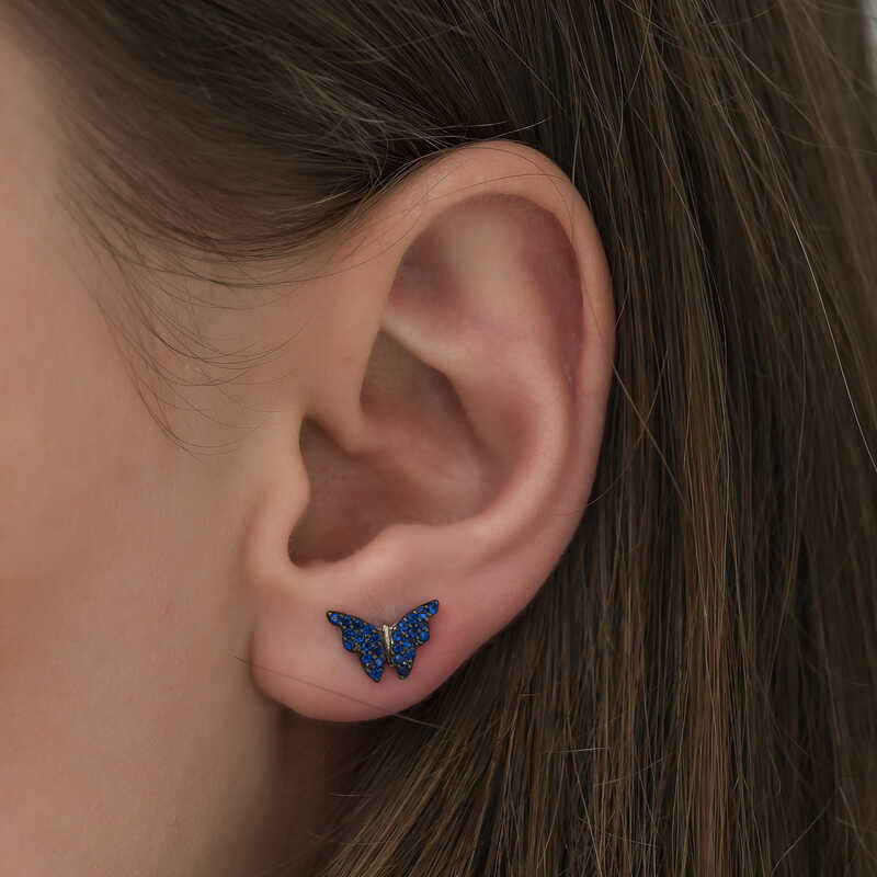 Her yastan kadinin stiline uyum saglayabilecek farkli kupe modellerinin yer aldigi koleksiyonumuzda birbirinden ozgun tasarimli kupe modelleri sizleri bekliyor. Kelebek figuru kullanilarak hazirlanan kupe aklinizi basinizdan alacak. Gunluk kullanima uygun bir model olan kupe her an sizlerle birlikte. Goz kamastiran yapisiyla tasarlanmis gumus kelebek kupeyi severek kullanacaksiniz. Bu koleksiyonda hem kendiniz, hem de sevdikleriniz icin mutlaka uygun bir kupe bulacaksiniz. Gumus lacivert kelebek kupe, 925 ayar gumusten imal edilmistir. Gumus uzerine rodyum kaplama yapilmistir. Rodyum kaplama yapilan gumus bayan kupeler parlakligini uzun sure muhafaza eder, oksitlenmesi gecikir. Uzerinde bulunan taslar zirkondur. Tum gumus bayan kupelerde oldugu gibi bu gumus lacivert kelebek kupe modeli de el emegi ile uretilmistir. Gumus ve degerli taslar nedeniyle belirtilen ortalama urun agirliginda ± %10 sapma olabilmektedir.
