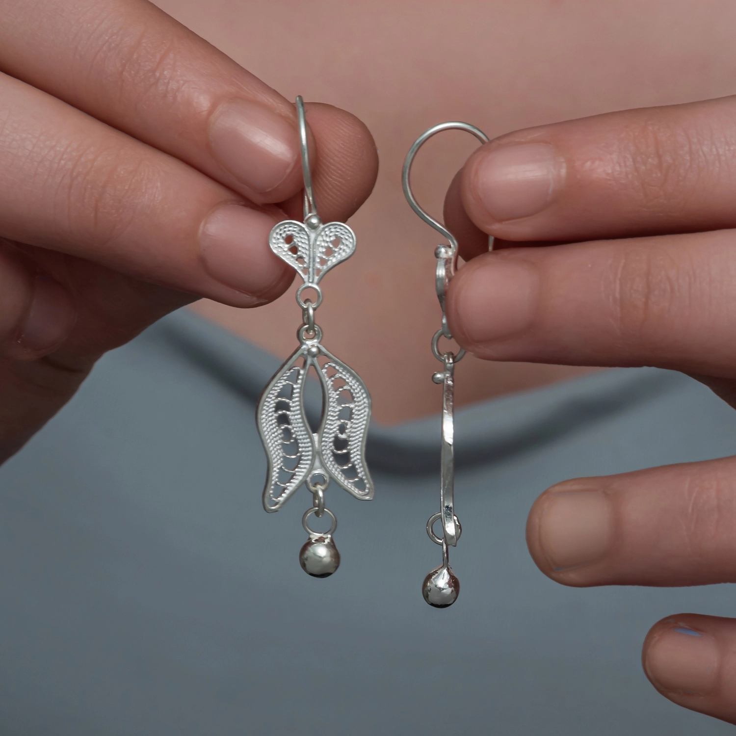Gumus Lale Motifli Telkari Kadin Kupe