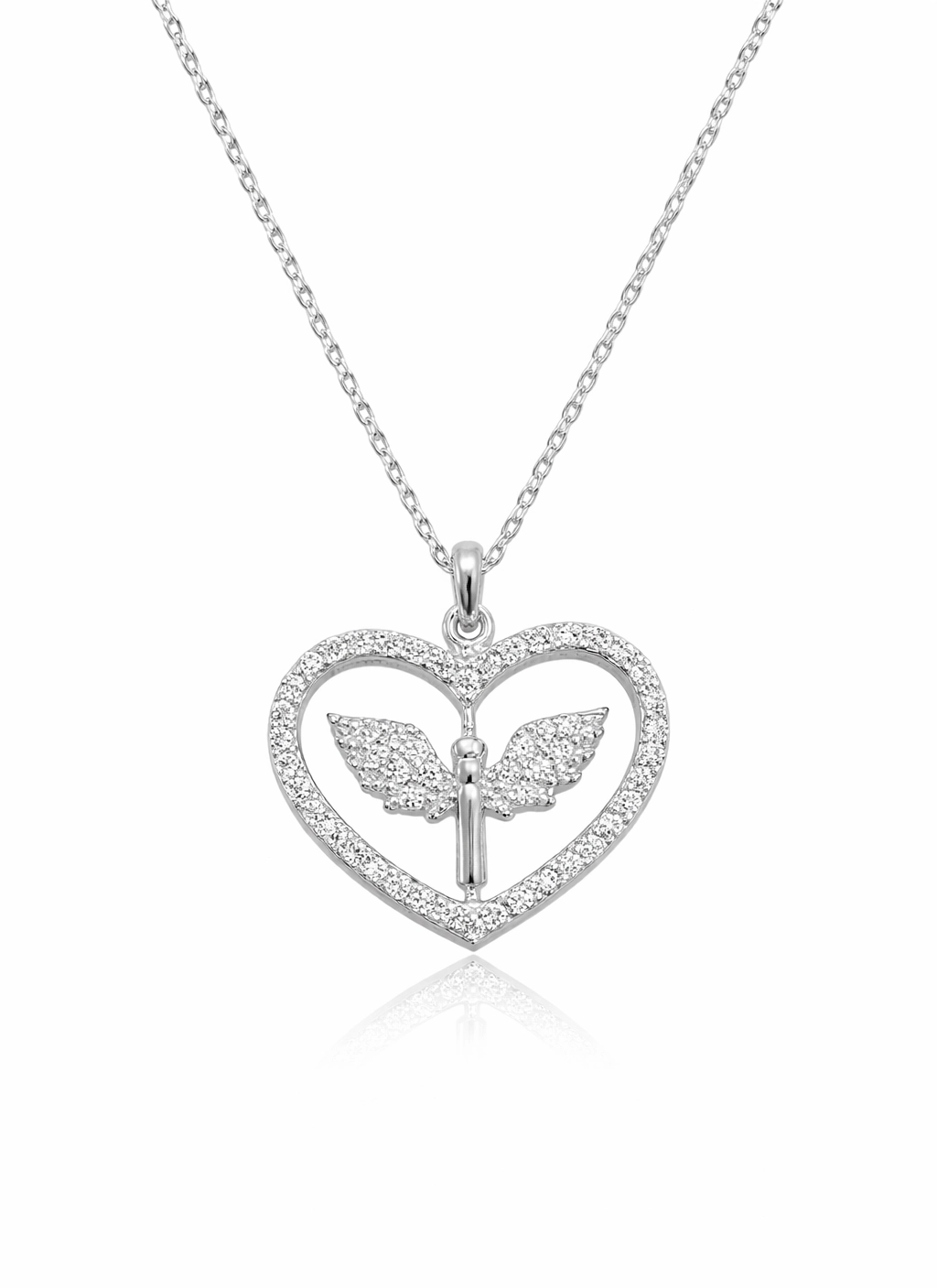 Gumus Mikail Melegi Figurlu Kalp Kadin Kolye