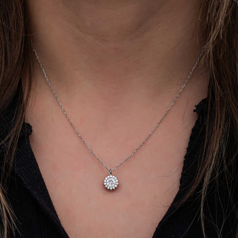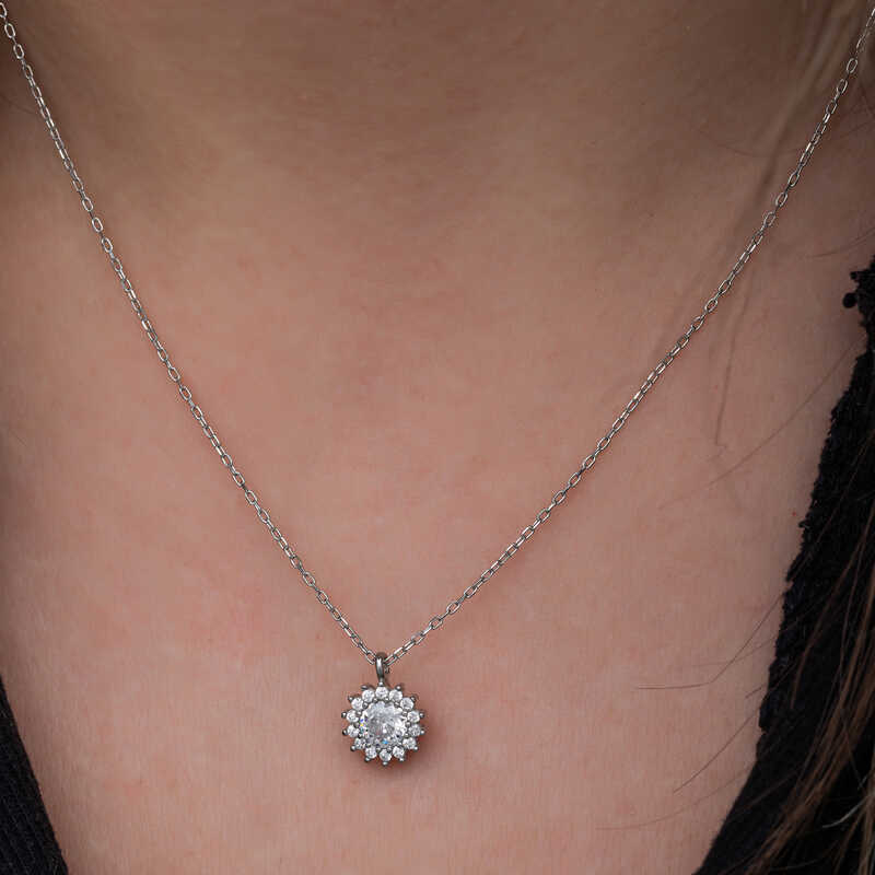 Gumus uzerindeki zirkon tasli tastan olusan bu kadin kolye modeli gunun her aninda kullanabileceginiz sik bir aksesuardir. Bu kolyeyi; kendinize ya da sevdiklerinize dogum gununde, Anneler gununde ya da ozel gunlerde hediye edebilirsiniz. Minimal yuvarlak anturaj kadin kolye modeli 925 ayar gumusten imal edilmistir. Gumus uzerine rodyum kaplama yapilmistir. Rodyum kaplama yapilan gumus kadin kolye modelleri parlakligini uzun sure muhafaza eder. Tum kadin kolyelerde oldugu gibi gumus yuvarlak anturaj kadin kolye modeli de el emegi ile uretilmistir. Gumus ve degerli taslar nedeniyle belirtilen ortalama urun agirliginda ± %10 sapma olabilmektedir.