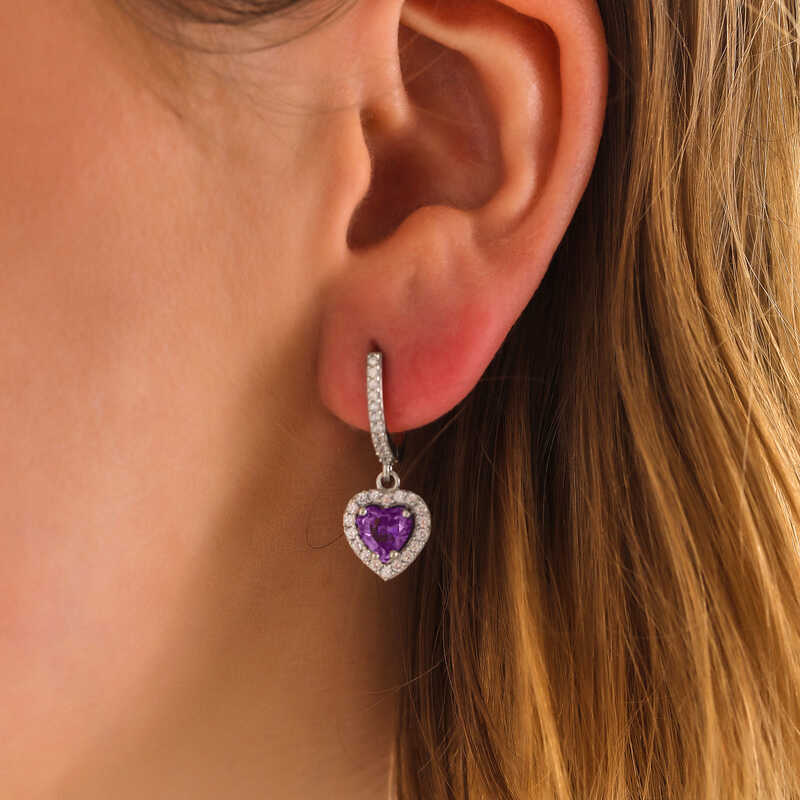 Kalp deseniyle aski ifade eden kalpli kolye modeli ile sevginiz, sevdiginiz kadinin teninde hayat bulsun. Genc sevgililerin ve kendini genc hissedenlerin ozel gunlerde secebilecegi bu kalpli kadin kupe ile sevdiginizi askla susleyin. Sizin oldugu kadar sevdiklerinizin de keyifle takacagi kalp desenli kupe sevdiginize en guzel hediyelerden biri olacaktir. Kalpli kadin kupe 925 ayar gumusten imal edilmistir. Gumus uzerine rodyum kaplama yapilmistir. Rodyum kaplama yapilan gumus kadin kalpli kupeler parlakligini uzun sure muhafaza eder ve oksitlenmesi gecikir. Kupe uzerinde bulunan beyaz taslar zirkondur. Tum kadin kupelerde oldugu gibi gumus mor tasli kalpli kadin kupe de el emegi ile uretilmistir. Gumus ve degerli taslar nedeniyle belirtilen ortalama urun agirliginda ± %10 sapma olabilmektedir.