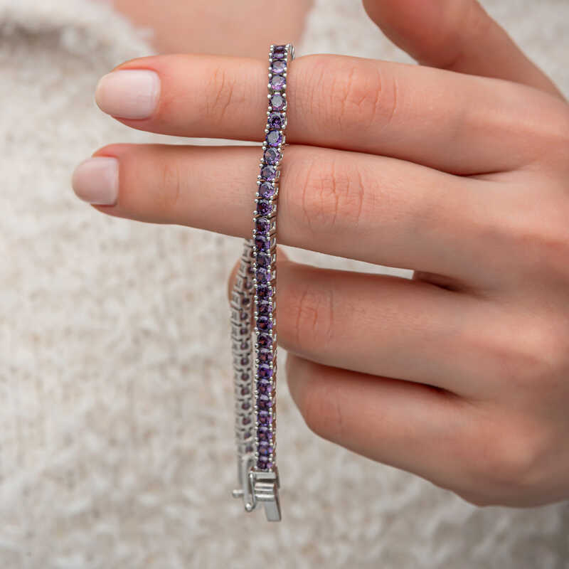 Zarif ve sade aksesuarlardan hoslanan kadinlarin ilk tercihleri arasinda bulunan su yolu bilekliklere,farkli tasarimlarla sahip olabilirsiniz.Ince ve titiz bir iscilikle tasarlanan su yolu bileklikleri dilediginiz ortamda tarzinizi butunlemek icin kullanabilirsiniz.Kiyafetlerinize isilti katmak ve bileginizin zerafetini artirmak icin su yolu bileklikleri tercih edebilirsiniz.Sade bir stile sahipseniz su yolu bilekliklerle kombinlerinize yumusak isiltilar kazandirabilirsiniz.Sevdikleriniz icin romantik ve anlamli bir hediye ariyorsaniz bu su yolu bileklikler ideal bir secim olabilir. Her donem sevilen bu sade ve sik bilekligi; dogum gunu hediyesi,sevgililer gunu hediyesi veya annelere hediye olarak ozel gunlerde tercih edebilirsiniz.Gumus mor zirkon tasli su yolu bayan bileklik, 925 ayar gumusten imal edilmistir.Gumus bileklik uzerine rodyum kaplama yapilmistir.Rodyum kaplama yapilan bayan bileklikler parlakligini uzun sure muhafaza eder, oksitlenmesini geciktirir.Tum gumus bayan bileklik modellerinde oldugu gibi bu gumus mor zirkon tasli su yolu bayan bileklik de tamami el emegi ile uretilmistir.Gumus ve degerli taslar nedeniyle belirtilen ortalama urun agirliginda ± %10 sapma olabilmektedir.