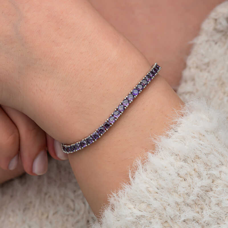 Gumus Mor Zirkon Tasli Su Yolu Kadin Bileklik