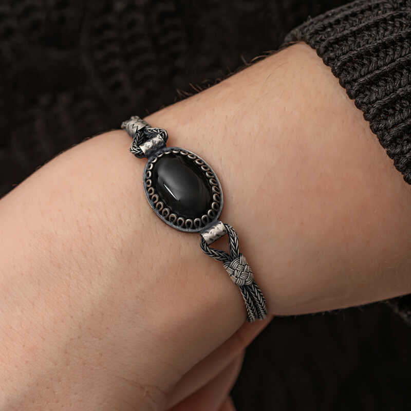 Gumus Oniks Tasli Kazaziye Bileklik