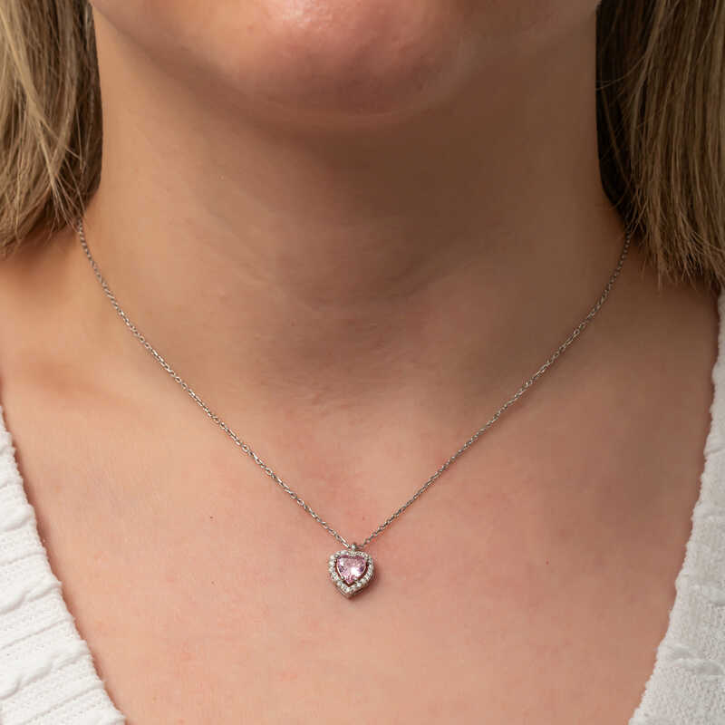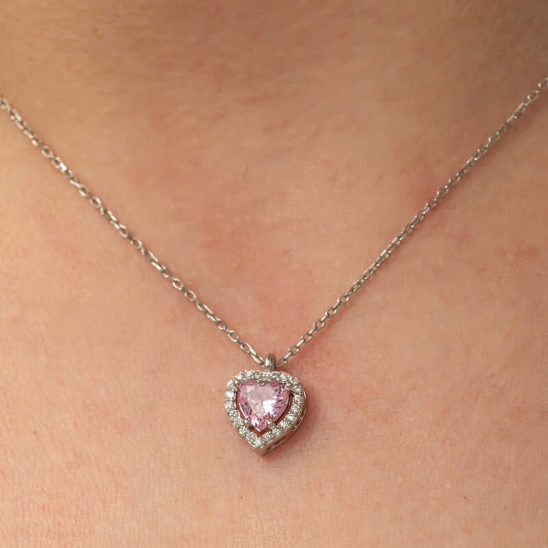 Gumus Pembe Tasli Kalp Kadin Kolye