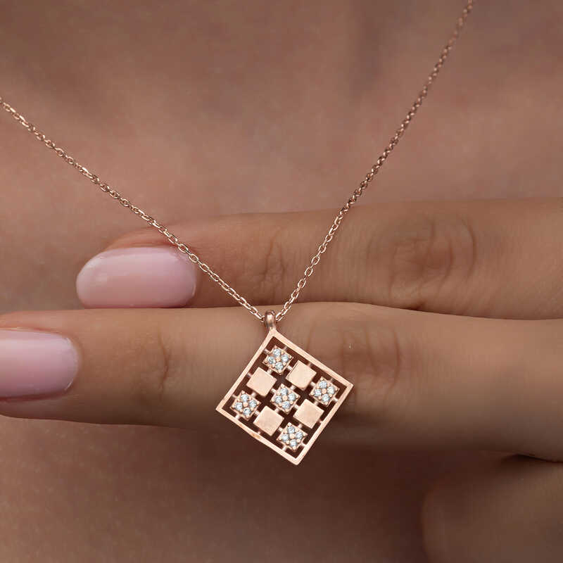 Gumus uzerindeki zirkon tasli tastan olusan bu kadin kolye modeli gunun her aninda kullanabileceginiz sik bir aksesuardir. Bu kolyeyi; kendinize ya da sevdiklerinize dogum gununde, Anneler gununde ya da ozel gunlerde hediye edebilirsiniz. Dortgen zirkon tasli kadin kolye modeli 925 ayar gumusten imal edilmistir. Gumus uzerine rose kaplama yapilmistir. Rose kaplama yapilan gumus kadin kolye modelleri parlakligini uzun sure muhafaza eder. Tum kadin kolyelerde oldugu gibi gumus dortgen zirkon tasli kadin kolye modeli de el emegi ile uretilmistir. Gumus ve degerli taslar nedeniyle belirtilen ortalama urun agirliginda ± %10 sapma olabilmektedir.