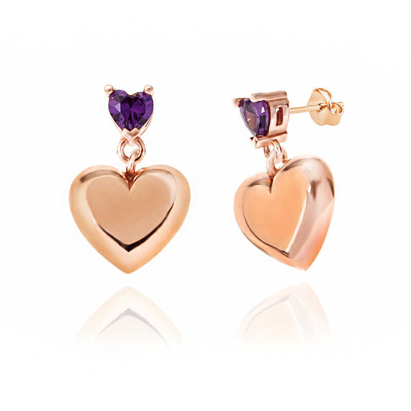 Gumus Rose Mor Zirkon Tasli Kalp Civili Kadin Kupe