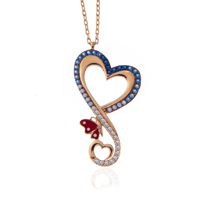 Gumus Rose Kalpli Kelebek Kadin Kolye