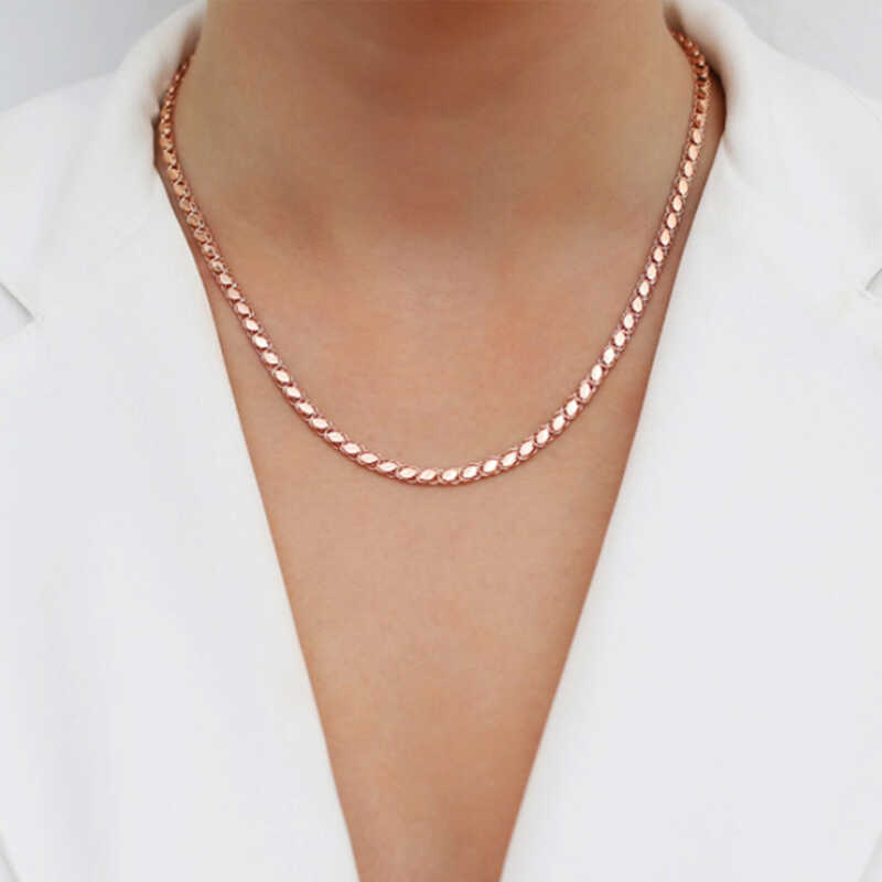 Gunluk hayatinda da bakimli gorunmek isteyen kadinlarin tercihi zincir kolyeler, en sade kiyafetlere dahi siklik katiyor. Pullu arpa zincir kolyeler zarifligi ve sikligiyla goz doldurmaya devam ediyor. Sik ve spor her kombinle kullanilabilen genis kullanim alanina sahip zincir kolyeler, tarzinizi ozgurce olusturmanizi sagliyor. Gumus pullu arpa zincir uzerine rose kaplama yapilmistir. Rose kaplama yapilan gumusun rengi, pembe renge donusmektedir. Tum gumus modellerimizde oldugu gibi gumus rose pullu arpa zincir modeli de tamamen el emegi ile uretilmistir. Gumus ve degerli taslar nedeniyle belirtilen ortalama urun agirliginda ± %10 sapma olabilmektedir.