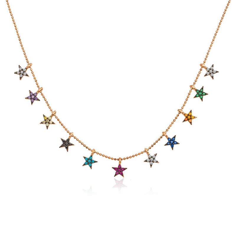 ​Gumus Rose Renkli Yildizlar Bayan Kolye