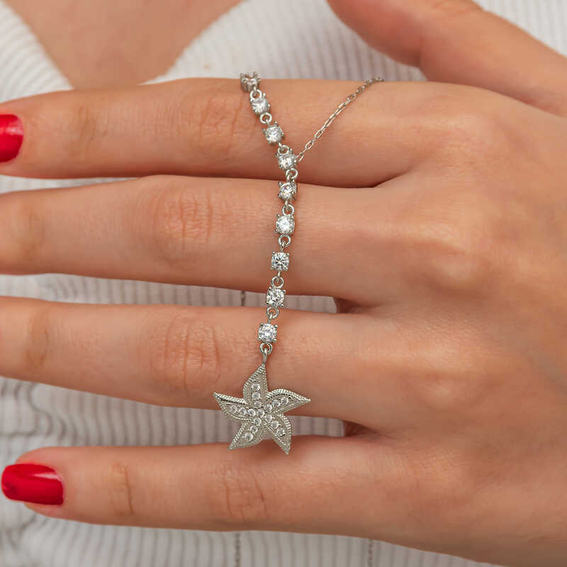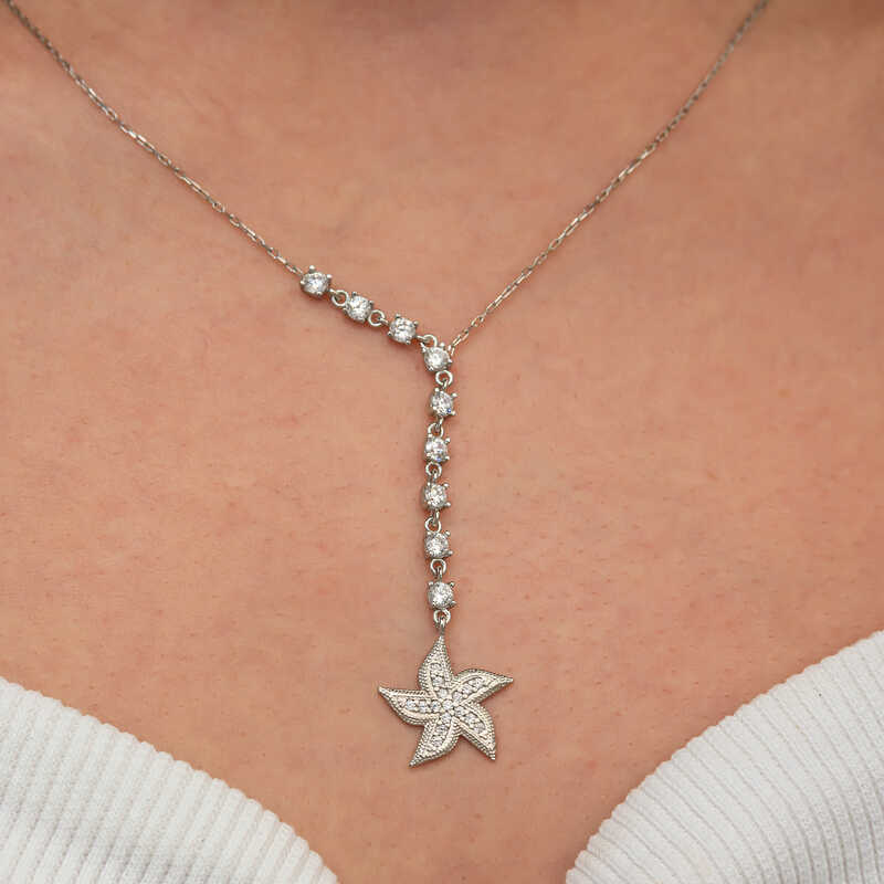 Gumus Sirali Zirkon Tasli Deniz Yildizi Kadin Kolye