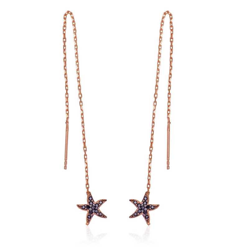 Deniz Yildizi; ilahi aski, ilahi rehberligi, ilhami, parlakligi ve umudu sembolize eder. Gokyuzunden denizlere dusmus deniz yildizi ile ruhunuz, umut ve askla dolsun. Sevgilisini, kizini ya da arkadasini sevindirmek isteyen herkesin alabilecegi bir hediye secenegidir. Gumus uzerine rose altin kaplama yapilmistir. Rose altin kaplama yapilan gumus kupe modelleri parlakligini uzun sure muhafaza eder, gumuse pembe rengi verir ve oksitlenmesini geciktirir. Kupenin uzerindeki taslar zirkon'dur. Tum gumus kupe modellerinde oldugu gibi gumus siyah tasli deniz yildizi zincirli kupe modeli de el emegi ile uretilmistir. Gumus ve degerli taslar nedeniyle belirtilen ortalama urun agirliginda ± %10 sapma olabilmektedir.