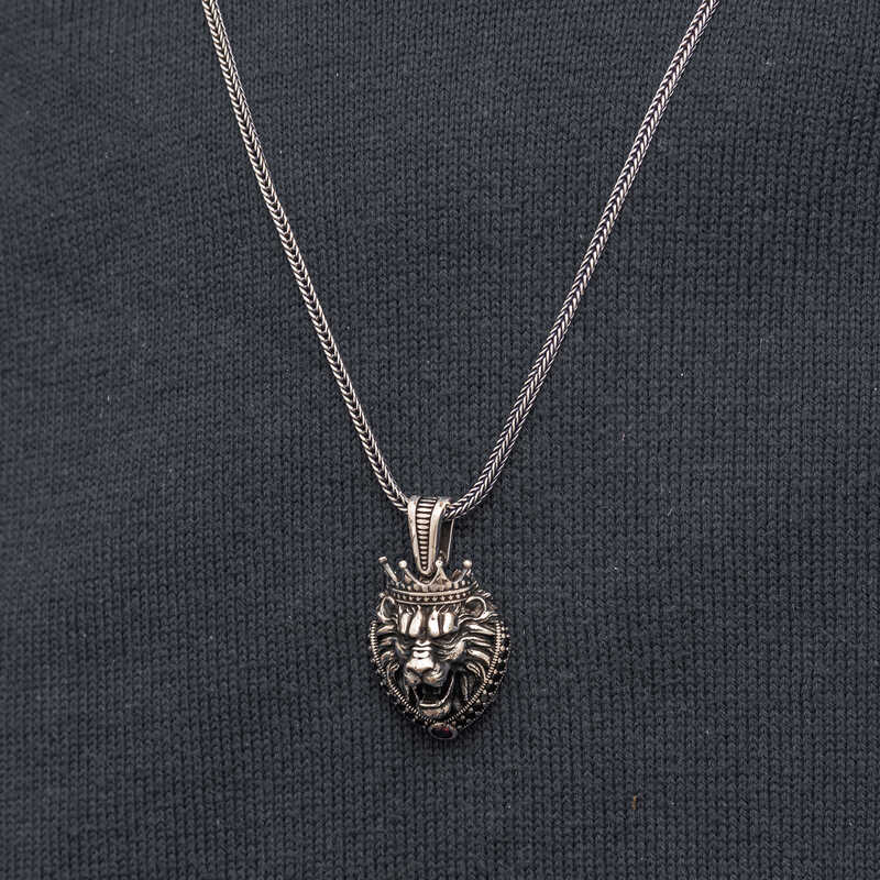 Gumus Tacli Aslan Figurlu Erkek Kolye