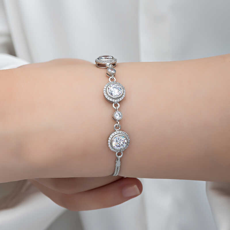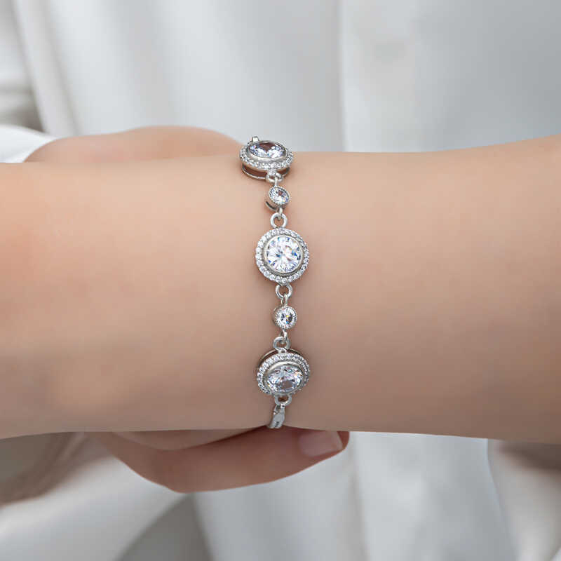 Gumus ve zirkonun goz kamastirici parlakligi ile yildizlari animsatmak isteyenlere bu tektas bileklik cok yakisacak. 925 ayar gumusten imal edilen bu bileklik hem sizin, hem de sevdiklerinizin keyifle takacagi spor ve klasik tum kombinler icin tercih edilebilir. Bileklik uzerindeki beyaz tas zirkondur. Dilerseniz kendinizi, dilerseniz sevdiklerinizi sik ve isil isil tek tas bileklik ile sevindirin. Gumus tek tas kadin bileklik uzerine rodyum kaplama yapilmistir. Rodyum kaplama yapilan tum gumus kadin bileklik modelleri parlakligini uzun sure muhafaza eder. Bilekligin zincir uzunlugu 21 cm dir. Tum gumus kadin bileklik modellerimizde oldugu gibi gumus tek tas kadin bileklikte el emegi ile uretilmistir. Gumus ve degerli taslar nedeniyle belirtilen ortalama urun agirliginda ± %10 sapma olabilmektedir.