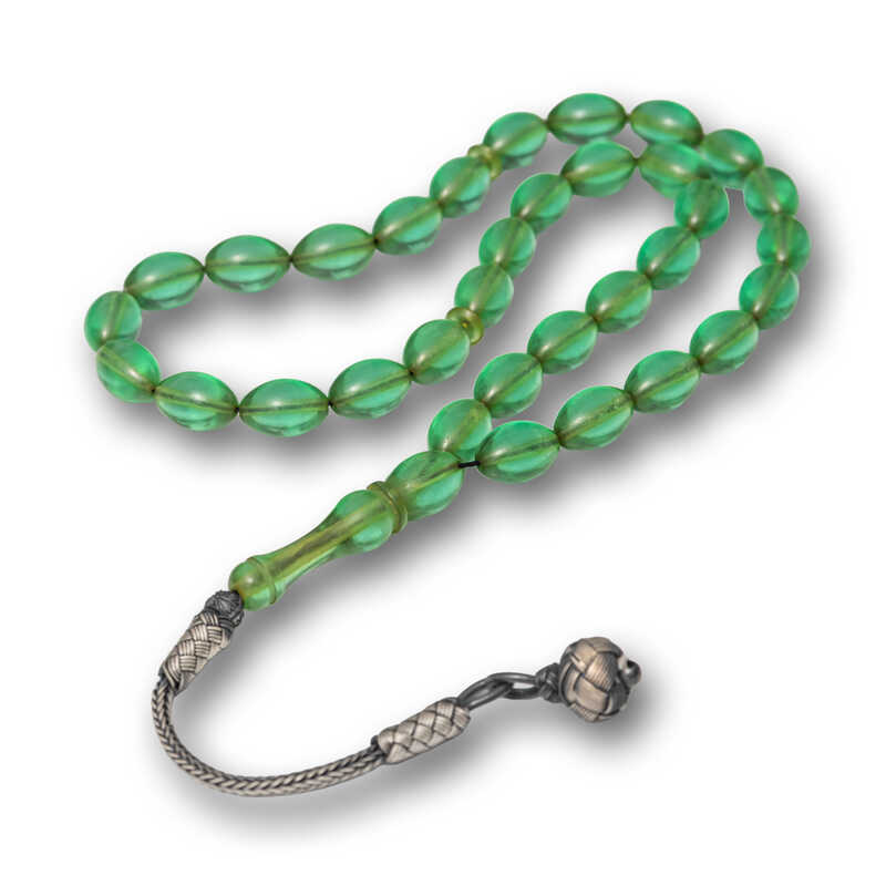 Gumus Top Kazaz Puskullu Yesil Sikma Kehribar Tesbih