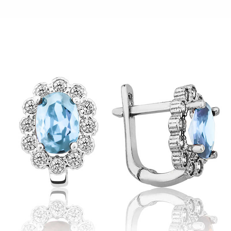 Gumus Turkuaz Cicek Desenli J Kadin Kupe