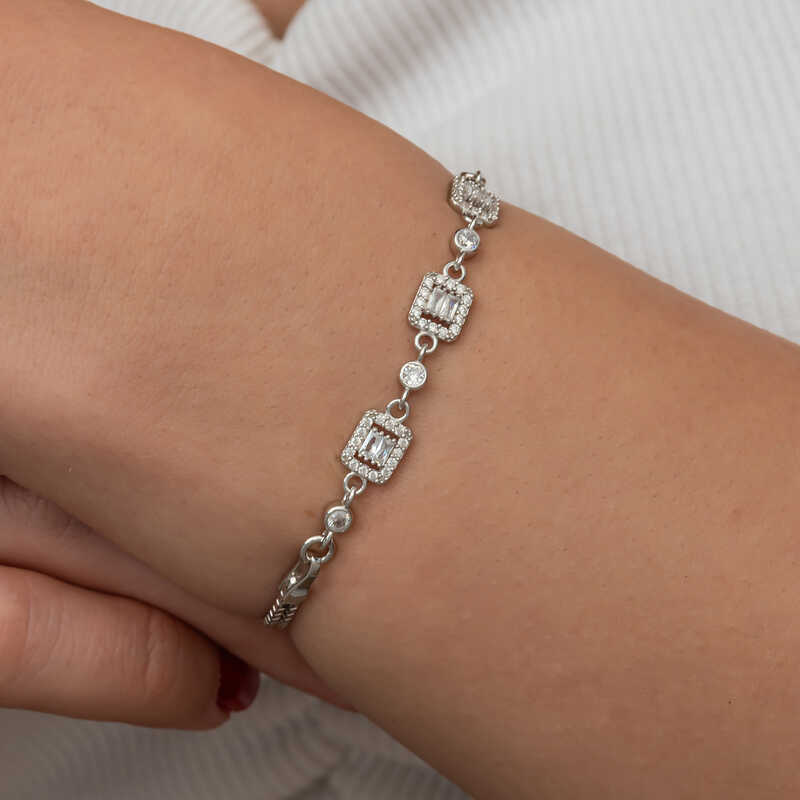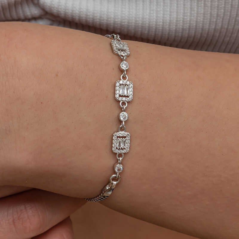 Gumus Uclu Baget Tasli Kadin Bileklik