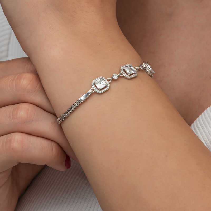 Gumus Uclu Kare Kadin Bileklik
