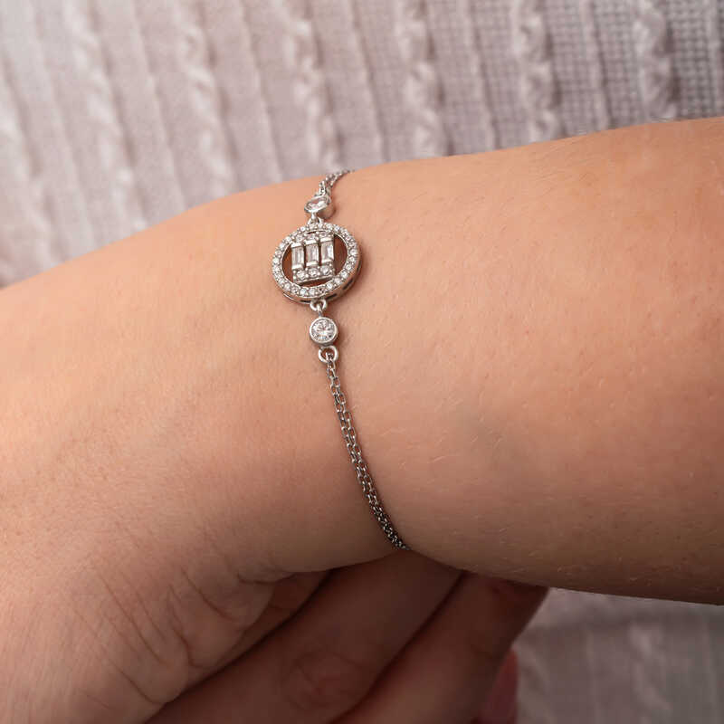 Gumus Yuvarlak Baget Tasli Kadin Bileklik