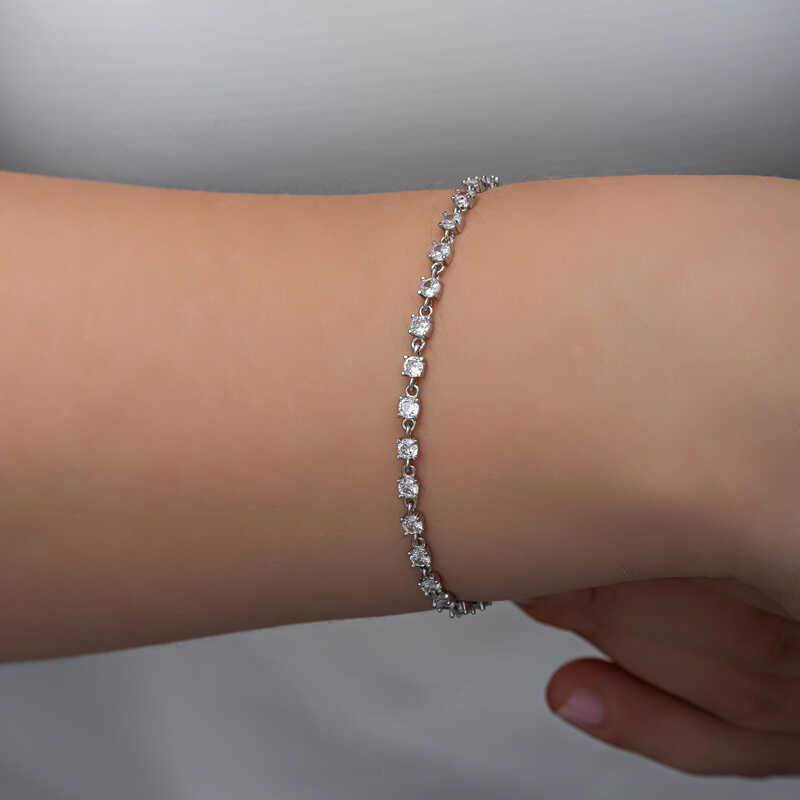 Ozel gunlerin ve ayni zamanda gundelik giyimin favori aksesuarlari arasinda yer alan gumus bileklikler ozgun tasarimlariyla sizlerle bulusuyor. Stilinizi vurgulayabilmenin ve disariya yansitabilmenin en zarif yollarini sizlere sunan bileklik modellerini inceleyerek sizler de gunun her aninda kullanabileceginiz bileklik modellerine sahip olabilirsiniz. Gumus Zirkon tasli kadin bileklik de bu bileklikler arasinda yer almaktadir. Gunluk ve ozel gunlerinizde kullanabileceginiz zirkon tasli bileklik 925 ayar gumusten uretilmistir. Gumus uzerine rodyum kaplama yapilmistir. Rodyum kaplama yapilan gumus urunler parlakligini uzun sure muhafaza eder. Tum gumus bilekliklerde oldugu gibi gumus zirkon tasli kadin bileklik modeli de el emegi ile uretilmistir. Gumus ve degerli taslar nedeniyle belirtilen urun agirliginda ± %10 sapma olabilmektedir.