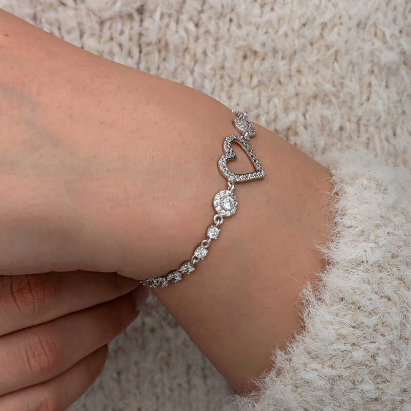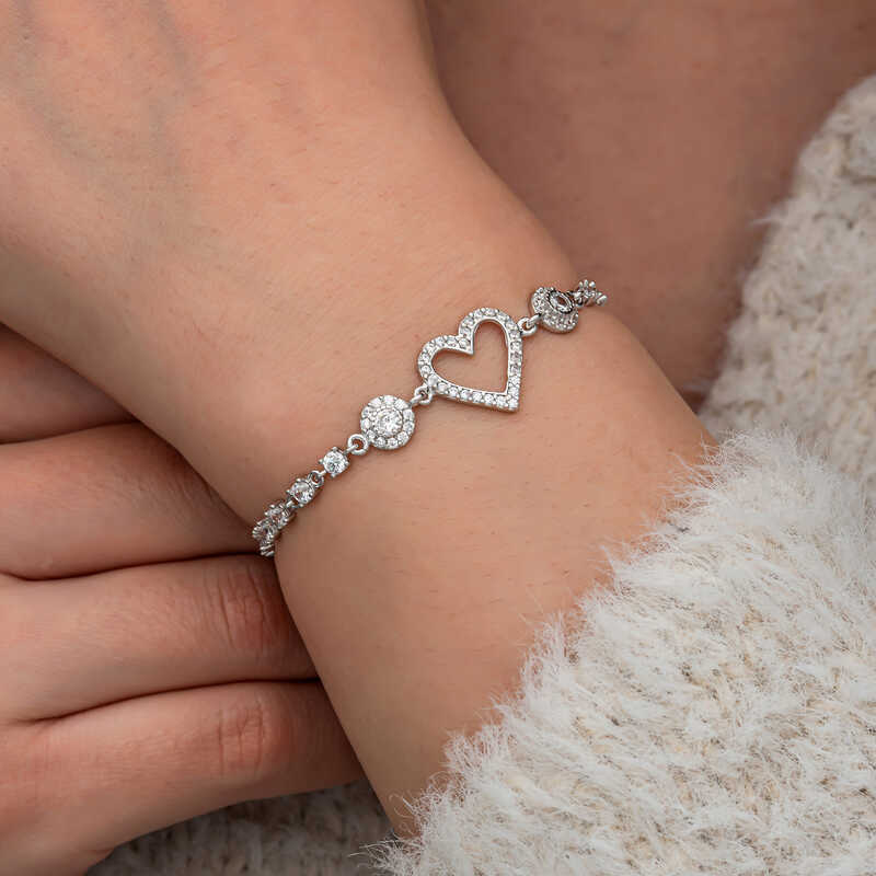 Gumus Zirkon Tasli Kalpli Kadin Bileklik