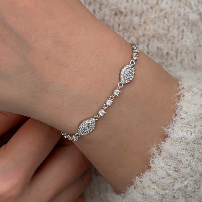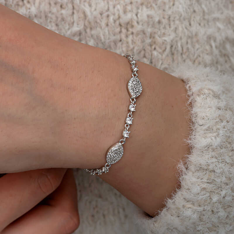 Gumus Zirkon Tasli Mekik Kadin Bileklik
