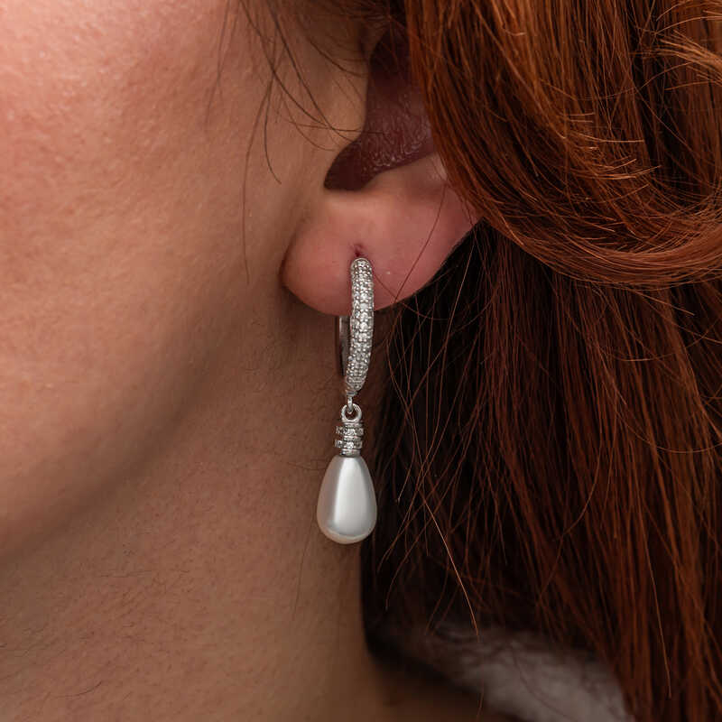 Gumus Zirkon Tasli Sallantili Damla Inci Kupe