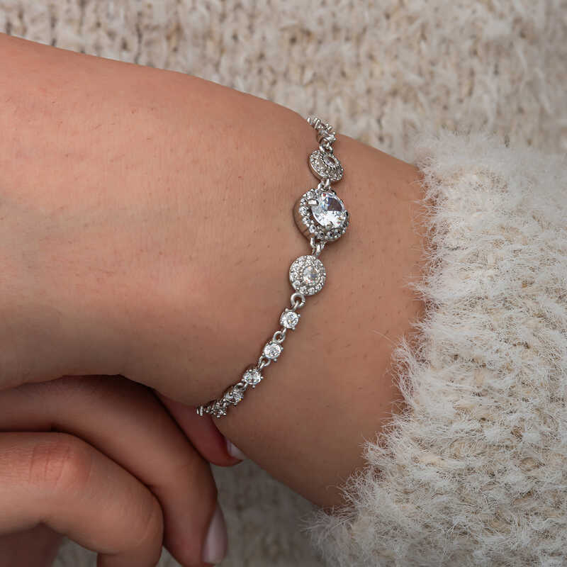 Gumus Zirkon Tasli Yuvarlak Kadin Bileklik
