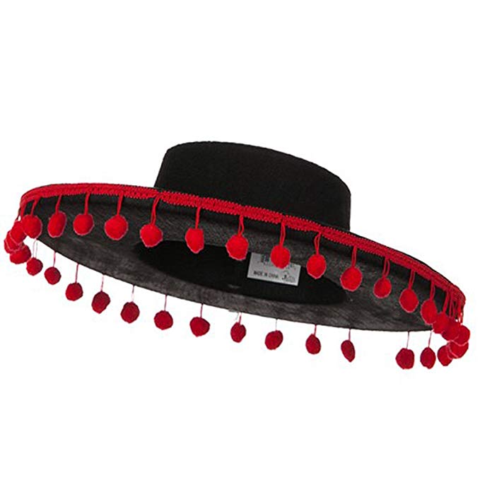 Kirmizi Ponponlu Siyah Renk Cocuk Ispanyol Sapkasi