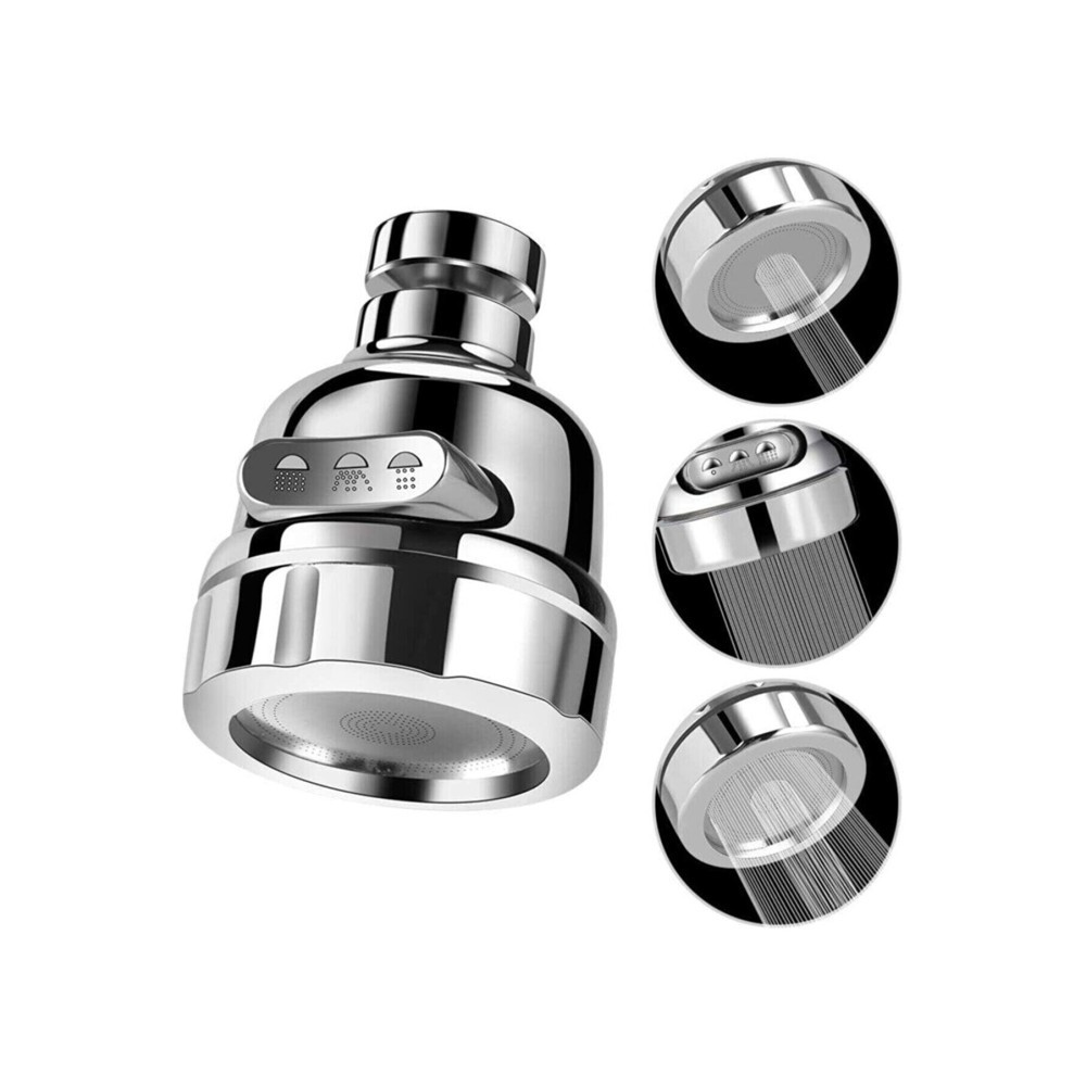 Krom 3 Fonksiyonlu Mutfak Lavabo Basligi 360 Derece Doner Musluk Ucu