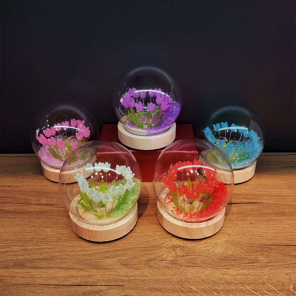 Led Isikli Lale Cam Fanus